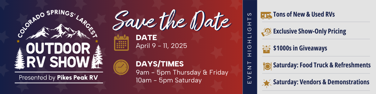 A full-service RV Sales & Service center located in Colorado Springs, Colorado. Pikes Peak RV carries a variety of new and used recreational vehicle options including ultra-lite and lightweight trailers, truck campers, travel trailers, toy haulers, fifth wheels, and motorhomes.